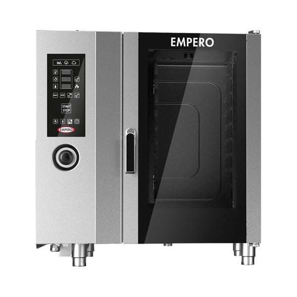 – 230V 50 Hz çalışma gücü.- LPG ve NG ile çalışabilme özelliği.- Pişirme sırasında enerji sarfiyatını düşüren ECO fonksiyonu.- PLUS ekstra güç fonksiyonu (gaz).- SC2 yarı otomatik yıkama.- 99 programlı pişirme hafızası : 4 fazlı; 3 ısıtma, 4 düşük dereceli pişirme ve 1 delta T programı.- Tek noktalı pişirme probu.- UR2 pişirme esnasında otomatik nem kontrolü.- RDC ekonomik buhar jenerasyonu sistemi.- Ters yönlü 2 kademeli AWC fan.- Manuel buhar enjeksiyonu.- Alarmla uyarı verebilen arıza teşhis özelliği.- IPX5 koruma derecesi.- Çift temperli camlı kapı.- 304 kalite paslanmaz dış gövde, 316 kalite fırın iç yapısı.- Kapalı kapı ile fırın içi soğutma fonksiyonu.- Set edilen ve ölçülen sıcaklık değerlerini ayrı gösterebilme özelliği.- Düşük sıcaklıklı veya yüksek sıcaklıklı buhar üretebilme özelliği.- Kendi kendini yıkayabilme özelliği. Kod Ürün Adı Ebatlarmm Ağırlıkkg Netm3 Güçkw Kapasitegn a b c EMP.CBE10 Elektrikli Kombi Fırın 920x874x975 198 1.2 17.3 10x(1/1 Gn)